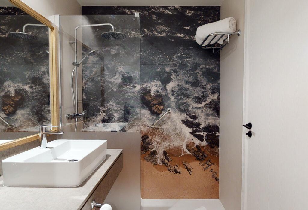 El NH Barajas es un hotel situado cerca del aeropuerto de Madrid, muy funcional, con 172 habitaciones que transformamos para darle un ambiente completamente diferente donde realizamos todas las puertas, armario, escritorio y también el lavabo, ya que nuestros materiales también son resistentes al agua. . Fue el hotel que nos dio visibilidad con la cadena y nos permitió realizar muchos más con ellos.